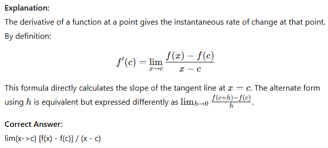 lim(x->0) [f(x) - f(c)] / (x - c)