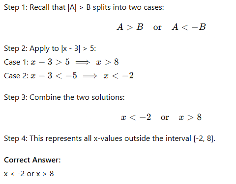 Solve the inequality |x - 3| > 5.