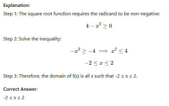 What is the domain of f(x) = √(4 - x²)?