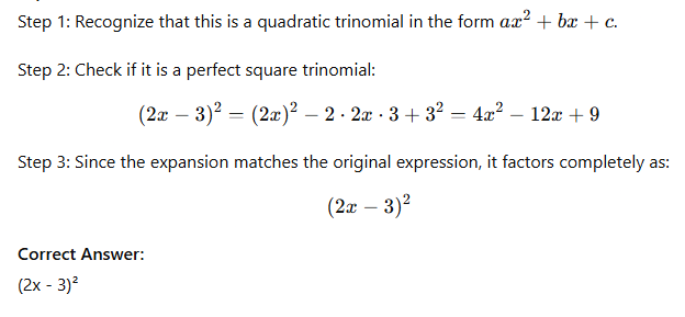 Factor completely: 4x² - 12x + 9.