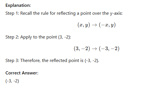 A teacher models reflection. Point (3, -2) reflected over y-axis is: