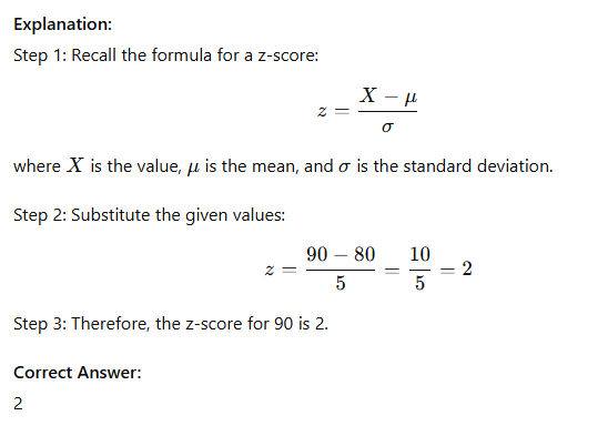 In a statistics class, mean = 80, SD = 5. What is z-score for 90?