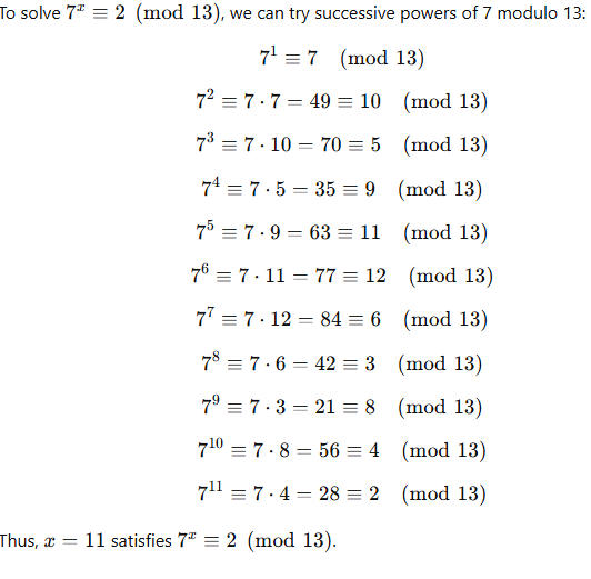 The modulo operation finds the remainder when one number is divided by another. Here, we divide 47 by 13. First, determine how many times 13 fits into 47: 13×3=39, which is the largest multiple of 13 less than 47. Then, subtract this from 47 to find the remainder: 47−39=8.Therefore, 47 mod 13=8.
