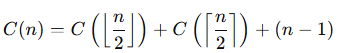 The worst-case number of comparisons can be computed using the recursive formula for comparisons C(n):