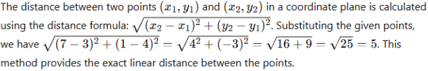 In coordinate geometry, what is the distance between points (3, 4) and (7, 1)?