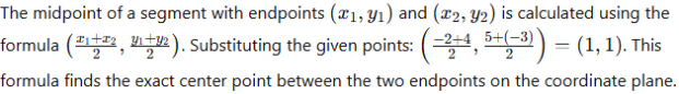 What is the midpoint of segment joining (-2,5) and (4,-3)?
