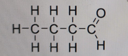 The structure shows a four-carbon chain ending in a carbonyl carbon (C=O) that is also bonded to a hydrogen. A four-carbon aldehyde is named butanal. Aldehydes have the carbonyl group (C=O) at the end of the chain, directly attached to at least one hydrogen. A ketone would have the carbonyl carbon bonded to two carbons in the middle of the chain, which is not the case here.