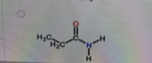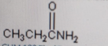 The structure shows an amide with the group CH₃CH₂–C(=O)–NH₂. The parent chain has three carbons (CH₃–CH₂–C=O), so the base name is “propan-”. Because the functional group is an amide (–CONH₂), the correct IUPAC name is propanamide.