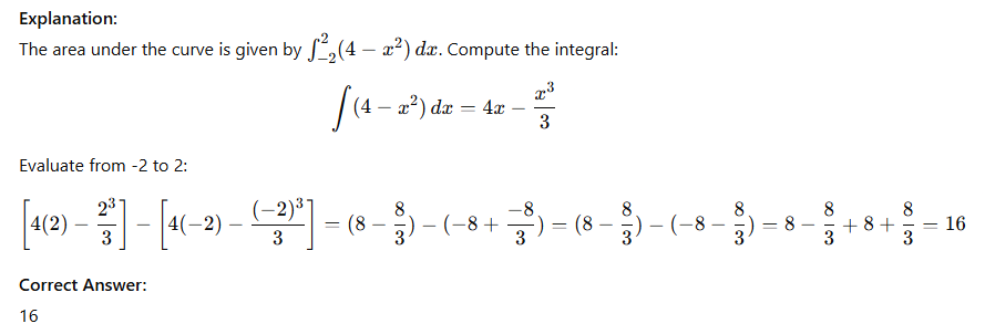 Area under y = 4 − x2 from -2 to 2?