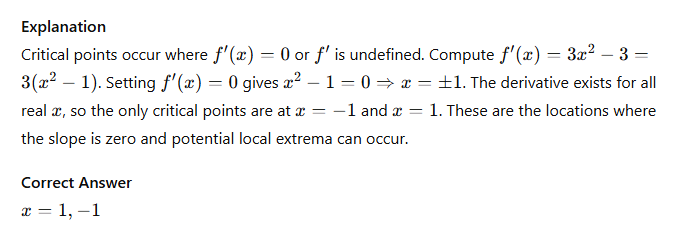 Find the critical points of f(x) = x3− 3x + 2.