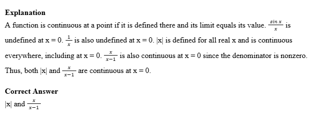 Which of the following functions is continuous at (x = 0)?