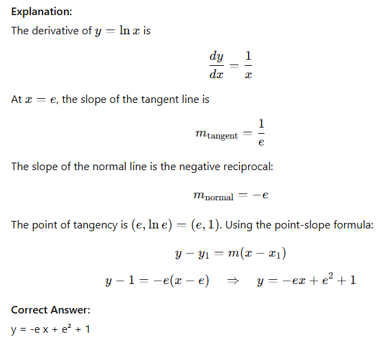 Normal line to y=lnx at x = e?