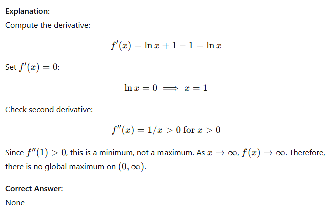 Global max of f(x) = x ln x − x on (0,∞)?